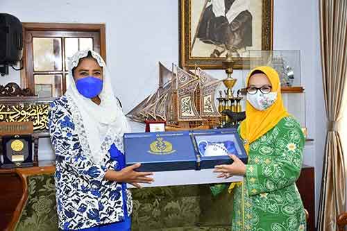 KSAL beserta istri dan rombongan disambut langsung oleh pangersa Umi Hj. Yoyoh Sofiyah dengan memberikan karangan bunga kepada istri KSAL ibu Veronica Yudo Margono.