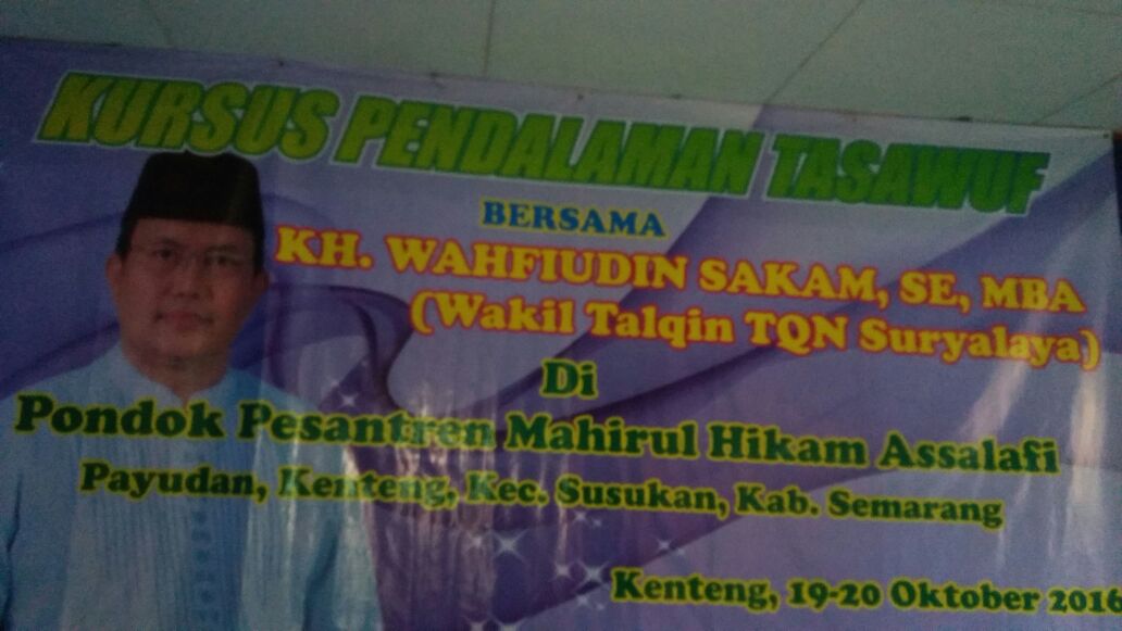 Hari ini (19/10) hingga Jumat (21/10), Pesantren Mahirul Hikam menyelenggarakan Kursus Pendalaman Tasawuf (KUPAT). Sebelumnya, pesantren yang berdiri sejak tahun 1985 ini telah menyelenggarakan Kursus Tasawuf (KT) sebanyak dua kali.