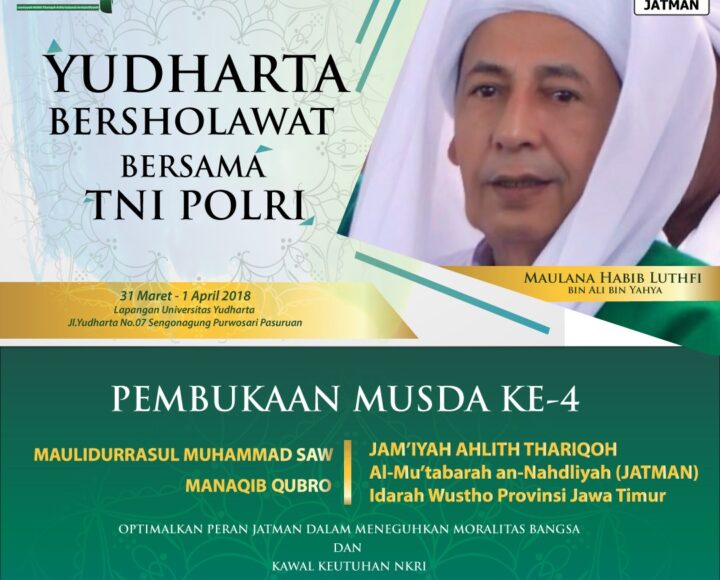 Rais Aam Jatman, Maulana Habib Luthfi bin Ali bin Yahya diagendakan hadir dalam pembukaan Musda. Rencananya, akan digelar Maulidurrasul Muhammad SAW dan Manaqib Qubro di Lapangan Univ. Yudharta, Jl. Yudharta No.07 Sengonagung Purwosari, bersama TNI dan Polri.